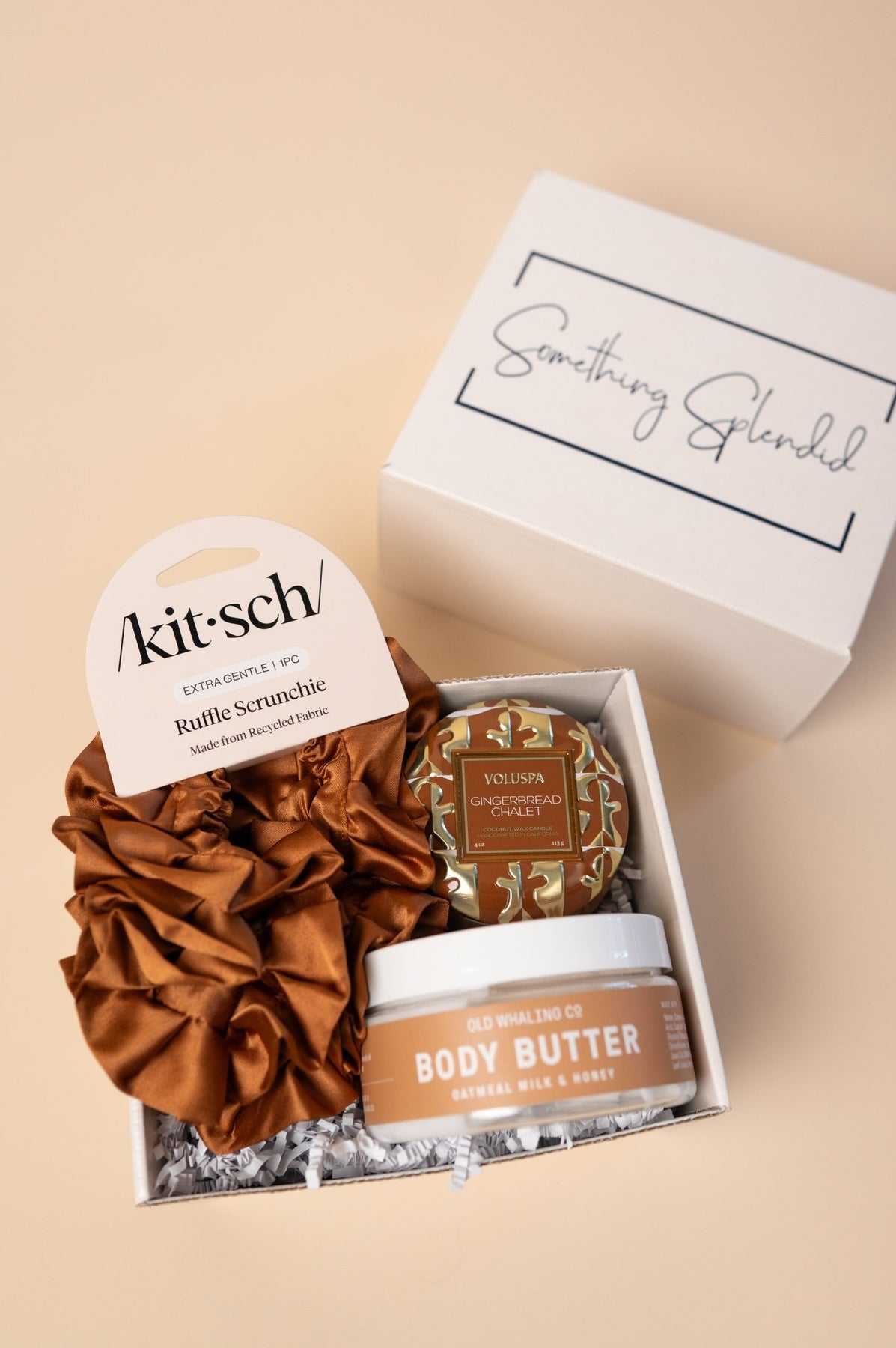 Add a little joy to their day with this gift box. Filled with things warm + cozy, this gift box is perfect for those who love to stay cozy all season long.