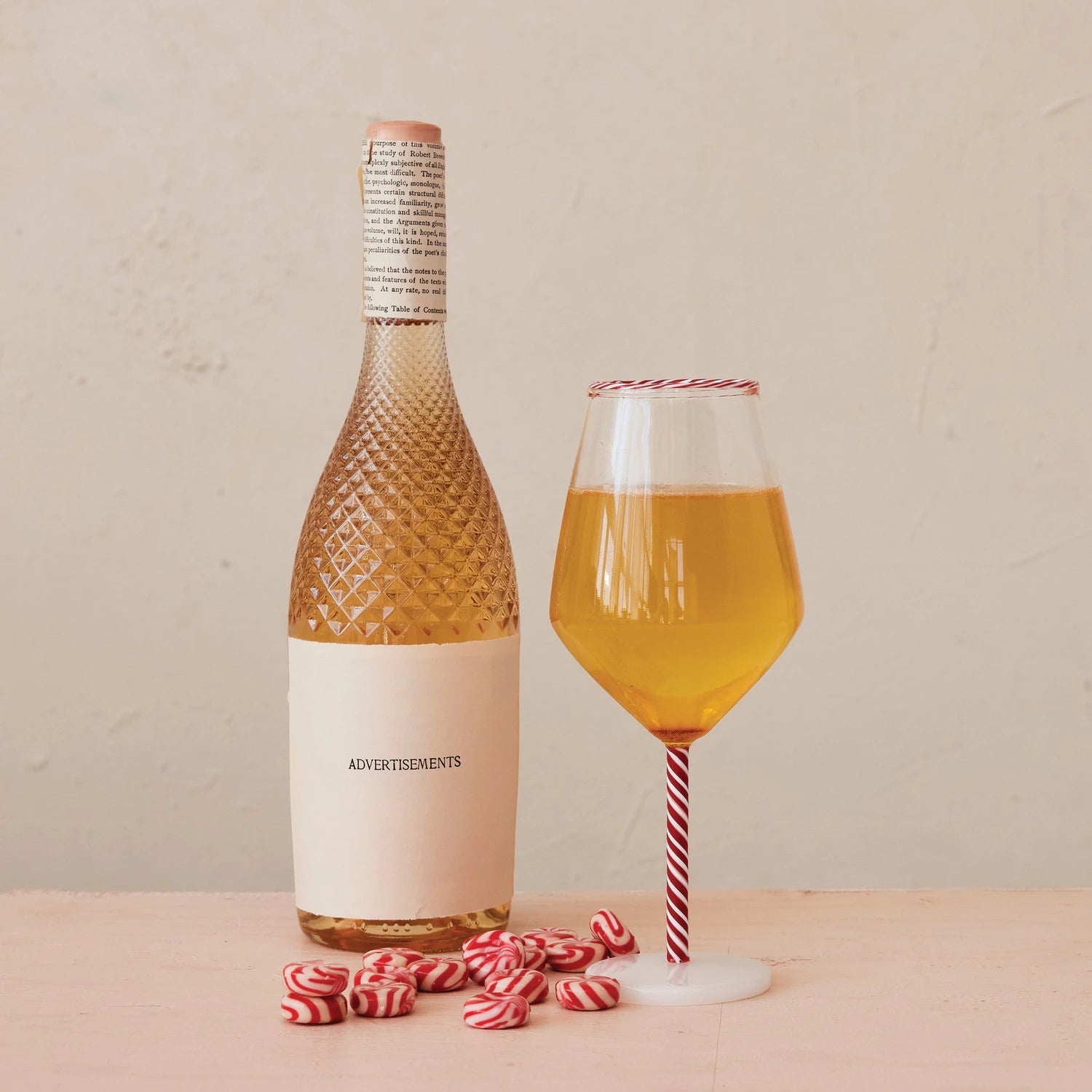 Elevate your wine experience this holiday season with this 12 oz. stemmed glass featuring a distinctive striped rim and stem. Perfectly balanced for comfortable holding, it adds a stylish touch to any gathering. Its clear design showcases the color and clarity of your favorite wines, enhancing every sip with elegance. Ideal for both casual and formal occasions, this glass combines functionality with eye-catching detail to impress your guests.