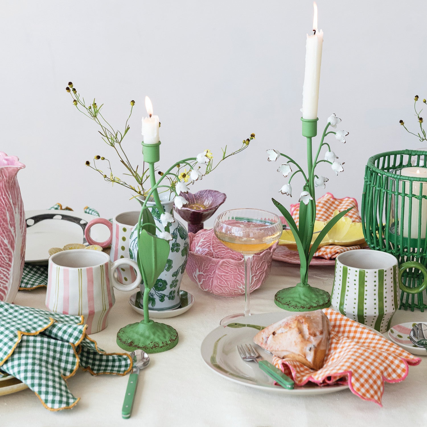 Charming stoneware baker shaped like a cabbage leaf, perfect for serving side dishes, bread, or baked goods. The soft pink glaze adds a whimsical touch to your table setting. Durable stoneware construction withstands oven and dishwasher use.