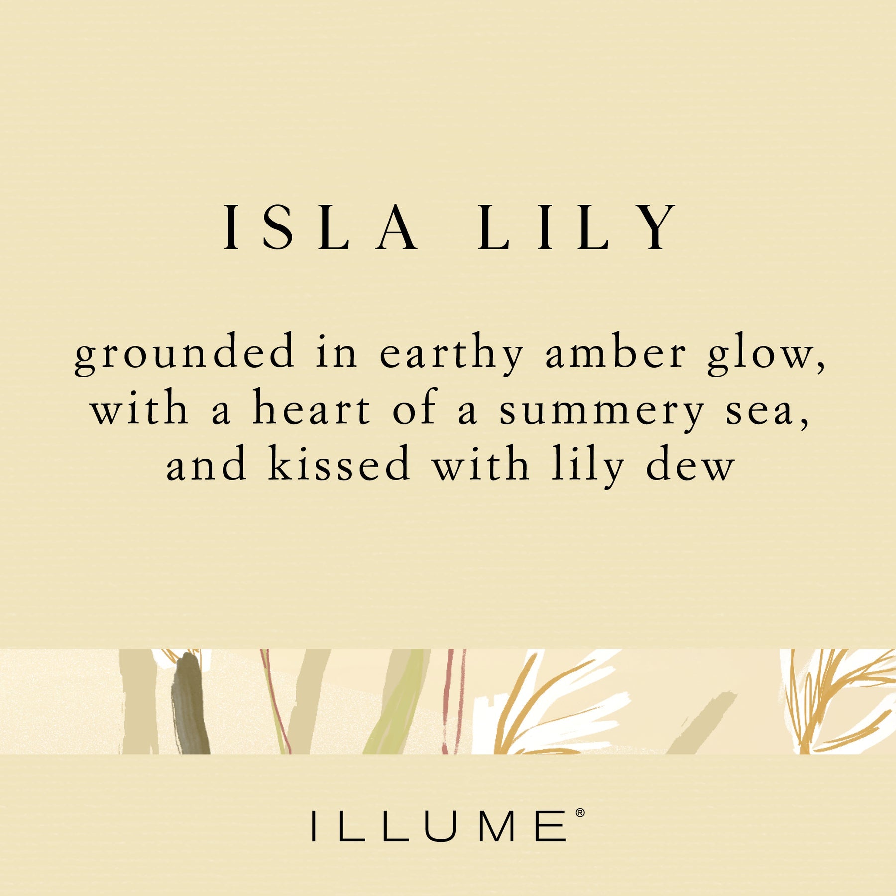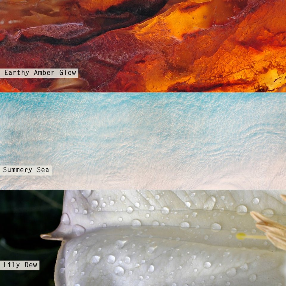 This scent is grounded in earthy amber glow, with a heart of a summery sea, and kissed with lily dew.