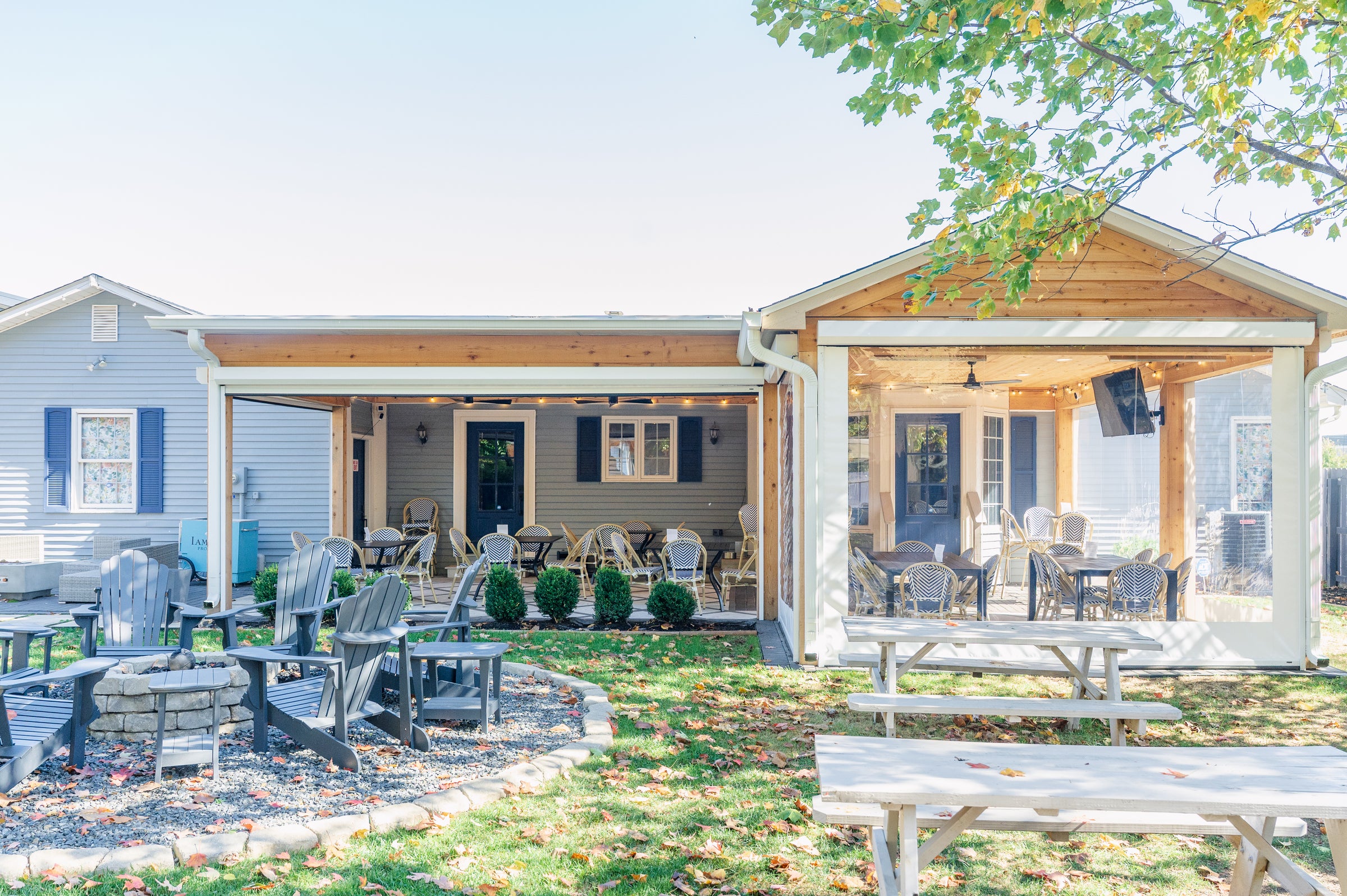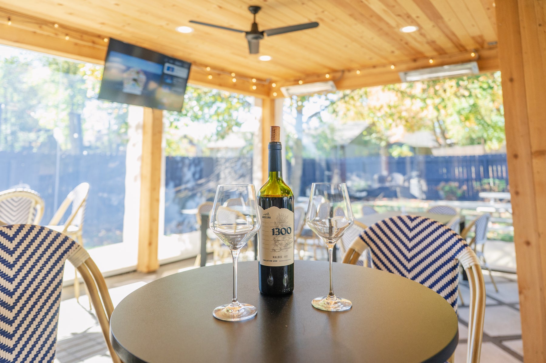 Our Wine Garden is open all 4 seasons! We have partial coverage, fans, heaters, and screens to make the space comfortable no matter the weather.