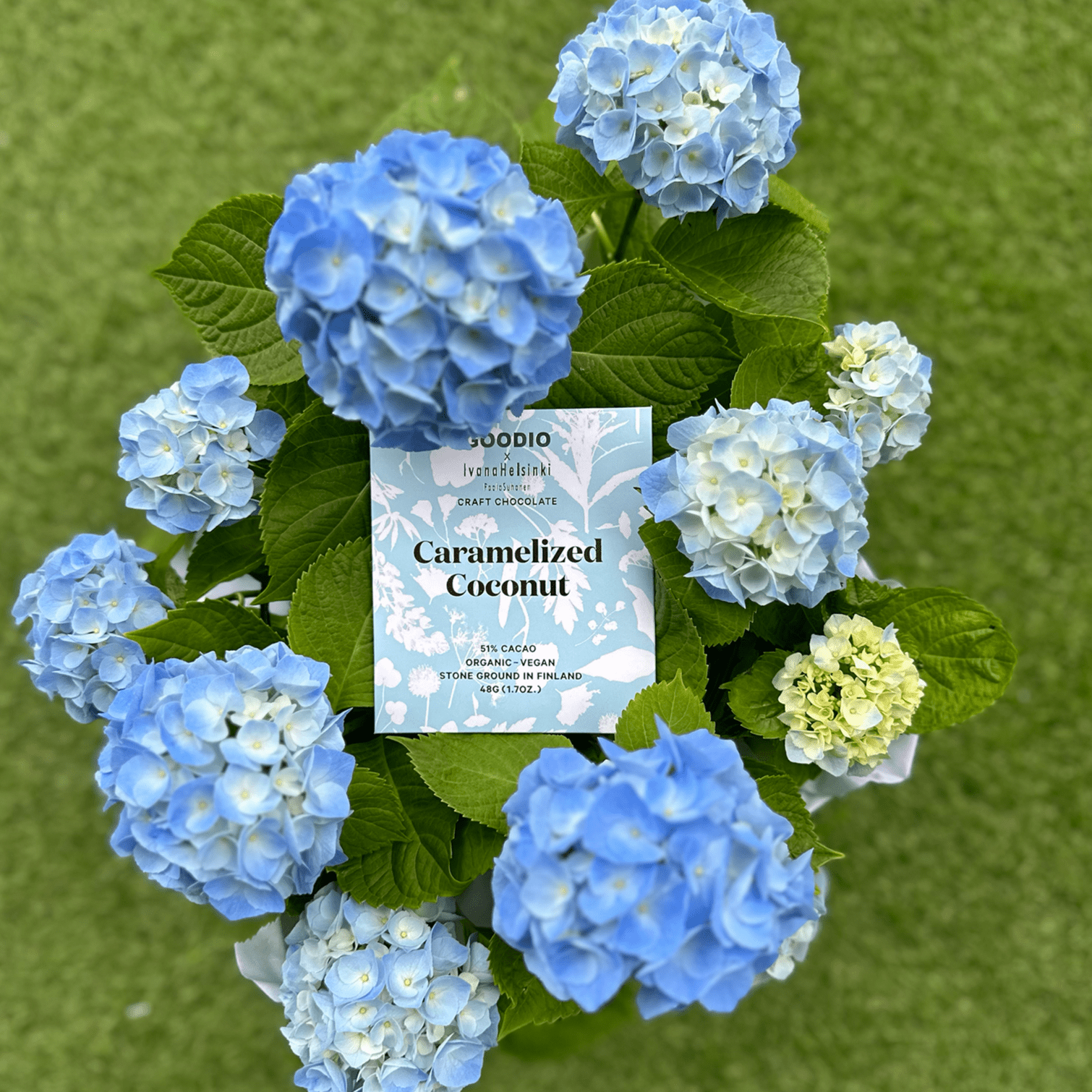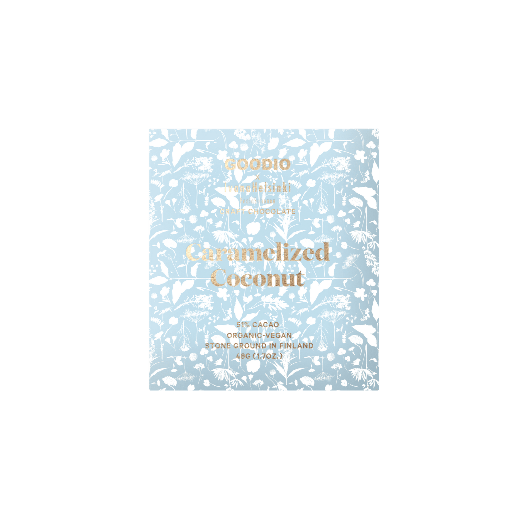 This bar is proudly handmade with love in Finland - the happiest country in the world by Goodio Chocolate Artists.