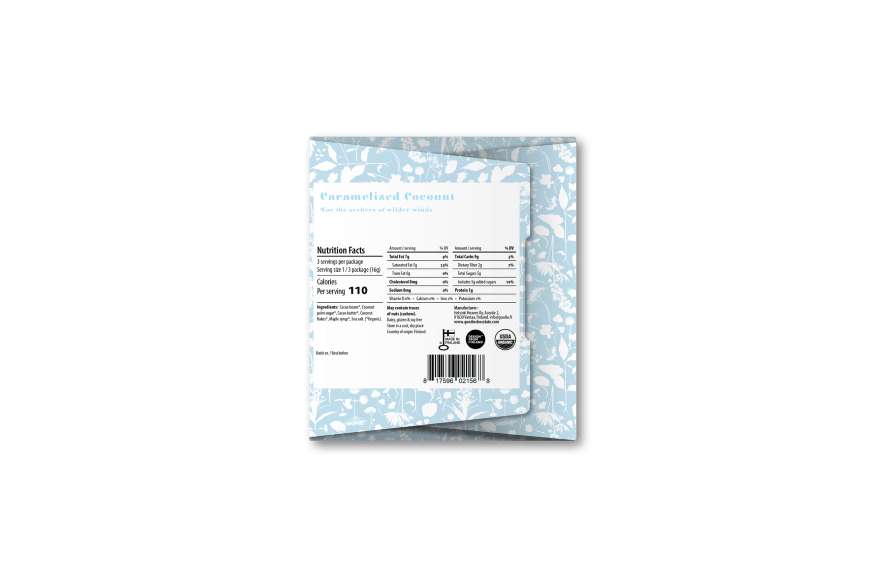 For the seekers of wilder winds - Soft and creamy coconut chocolate with crispy caramelized coconut flakes.
