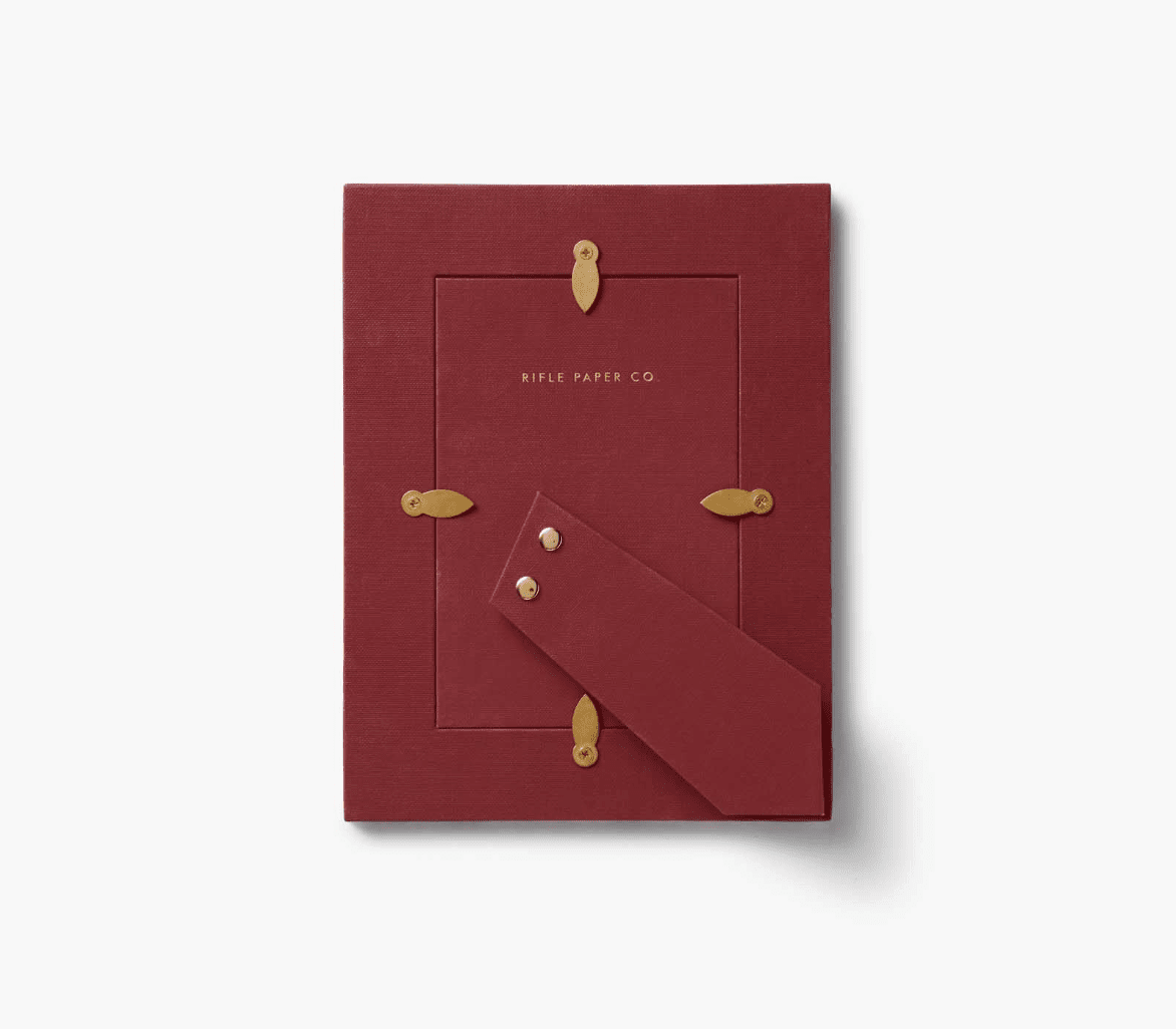 Sized for a 4x6 photo, this paper-wrapped frame features an illustrated floral design, a scalloped photo mat, and a kickstand for display.
