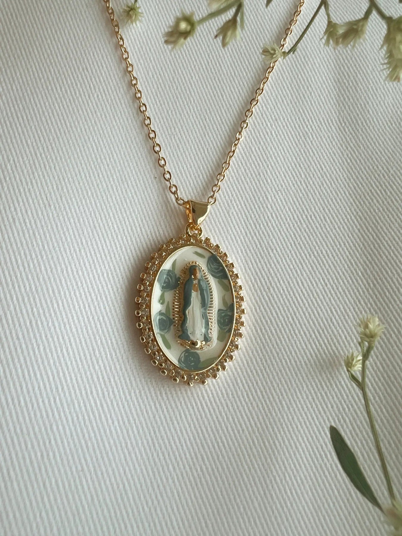Mother Mary in Blue Roses Necklace - Something Splendid Co.