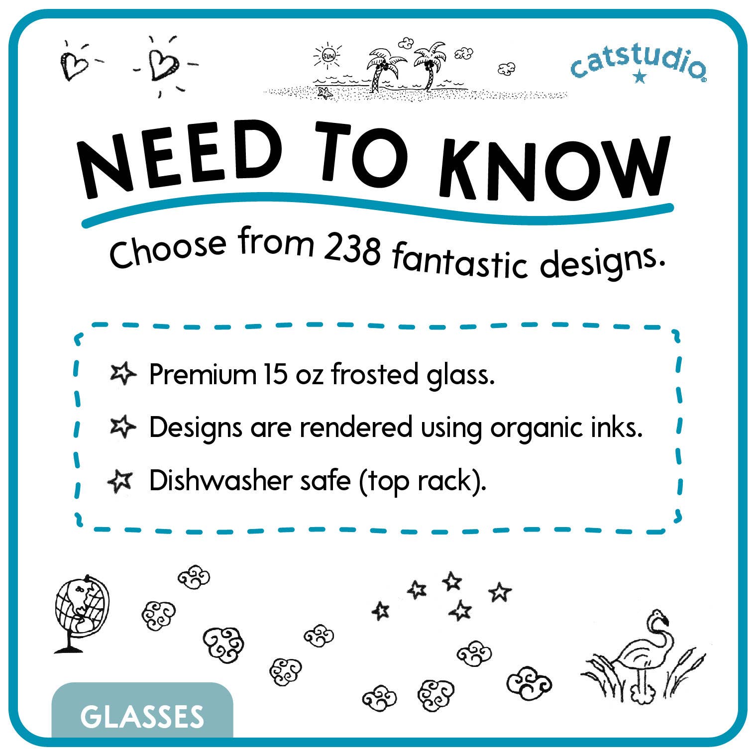 • The hand-applied, original artwork that adorns each 15 oz glass is made of biodegradable organic ink.
